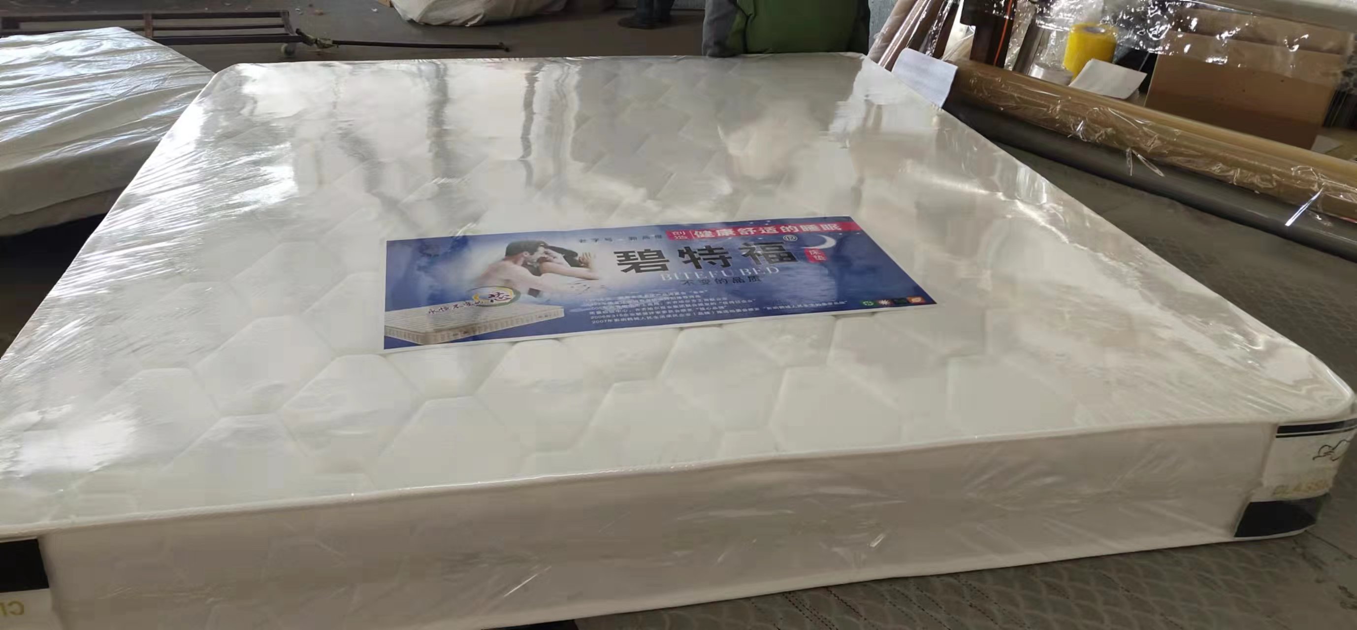 我廠還有自己獨(dú)立的床墊品牌,比特福,美迪麗,生產(chǎn)13種床墊,特尺加工。同時(shí)為了方便于每個(gè)客戶的需求,我們還代銷床墊輔料,裥花面料,各式花樣。